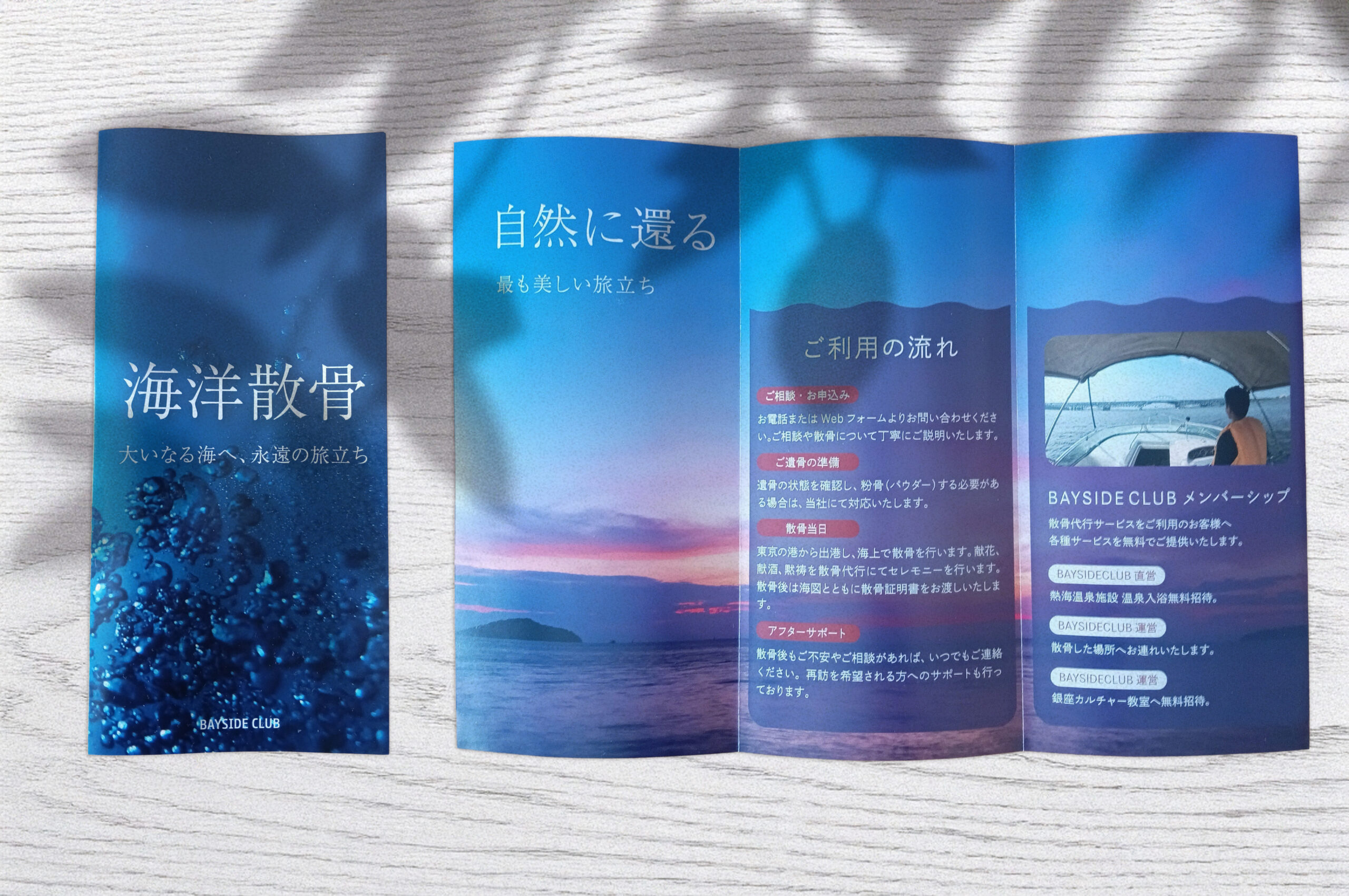情報がすっきりと整理され、初めて手に取った方にもサービスの流れや費用が一目でわかるよう工夫しました。