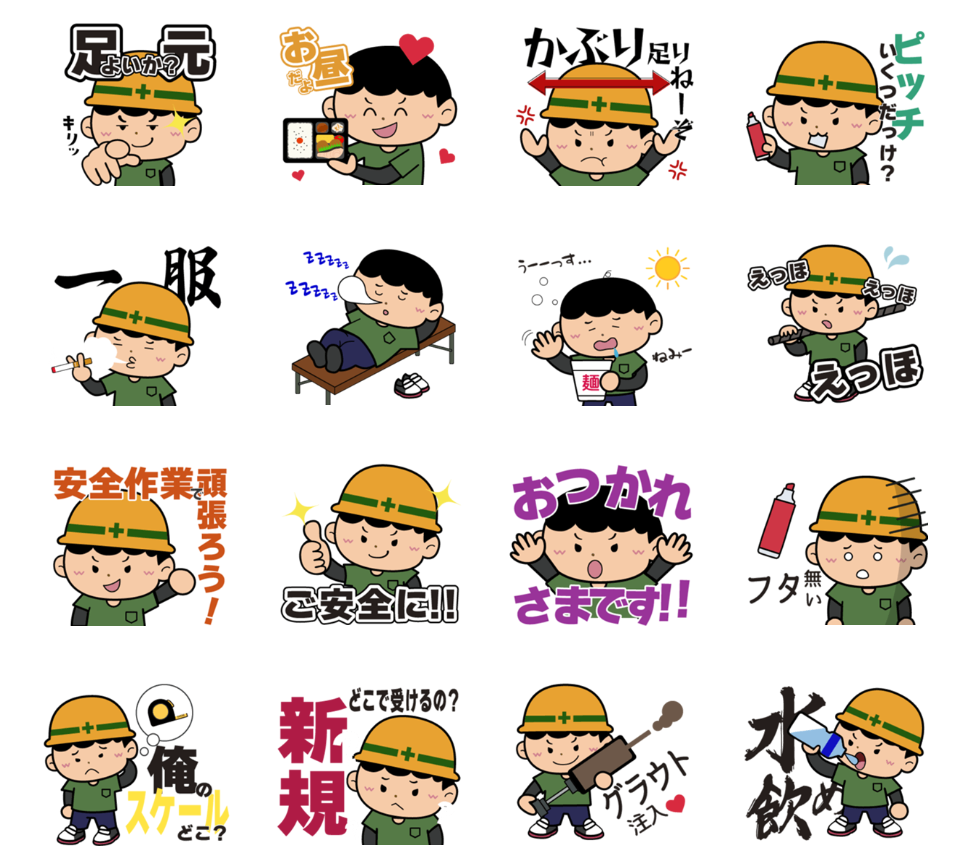 建築現場で働く、鉄筋職人わたるくんのスタンプです。現場あるあるをスタンプにしてみました!かなりマニアックな内容なので、刺さる人は少ないかもしれません(笑)ご購入希望の方は画像をクリックしてみてください!